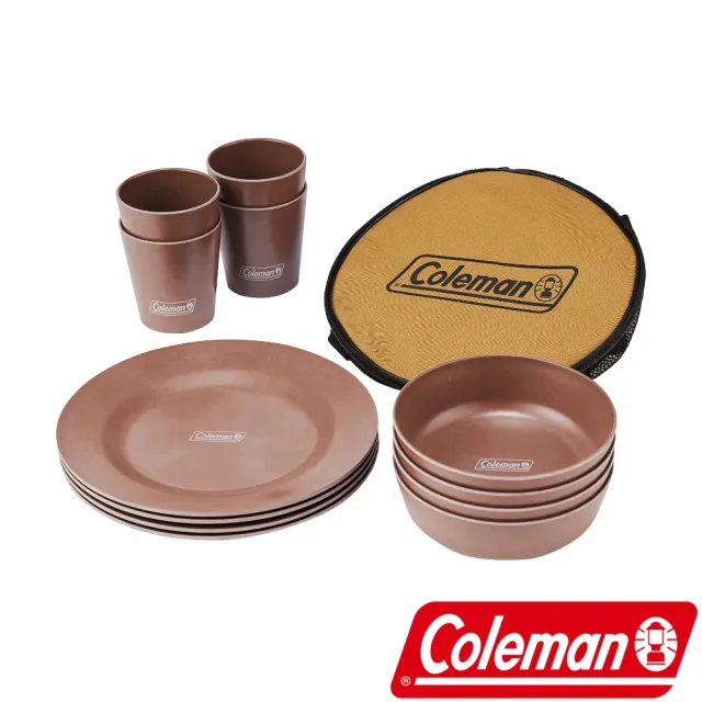 4組餐盤、碗、杯子。