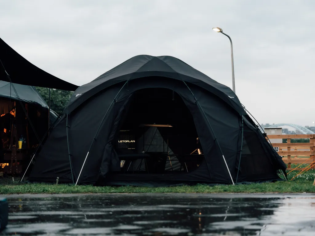 圓形結構設計,最大寬度 4 公尺、最高點 2 公尺,不管是獨自一人還是一家四口,皆能自在活動。站著換衣、席地躺平都不是問題。結構圓潤、無死角,好搭好收。