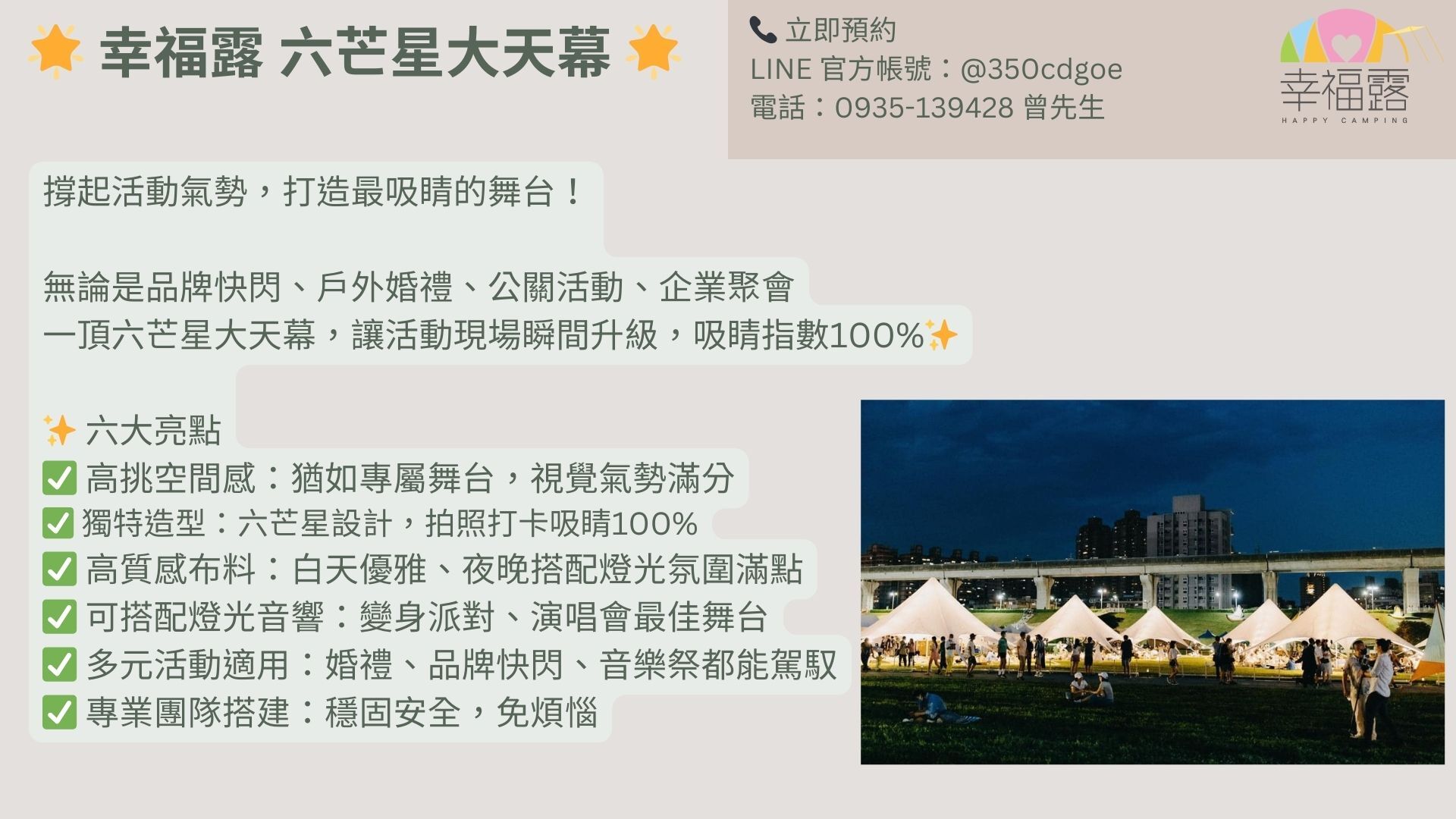 ✨ 幸福露六芒星活動帳出租 ✨讓每次活動,都變成值得回味的幸福時光 🌙